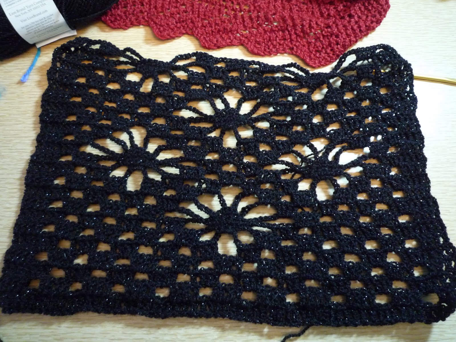 Purple baby dress: 6 dc's r & l back 12 dc's sleeves 12 - 14 dc's front + 4 chains for shell raglan ( 2 dc 2ch 2 dc)
